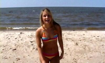 Sextractive blonde hottie Jennifer walks with her friend wearing bathing suit