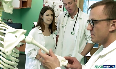 Big tits nurse fucks hefty cock student