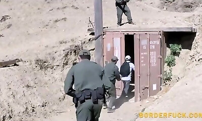 Cute teen deep throats and gets pounded by border patrol