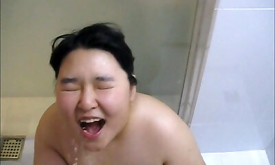 Chubby Korean GF's golden douche