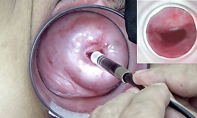 A endoscope asian camera is stuffed in the cervix to watch inside the uterus.