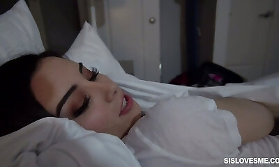 lascivo sorella aria lee gioca con il fratellastro cazzo prima di addormentarsi